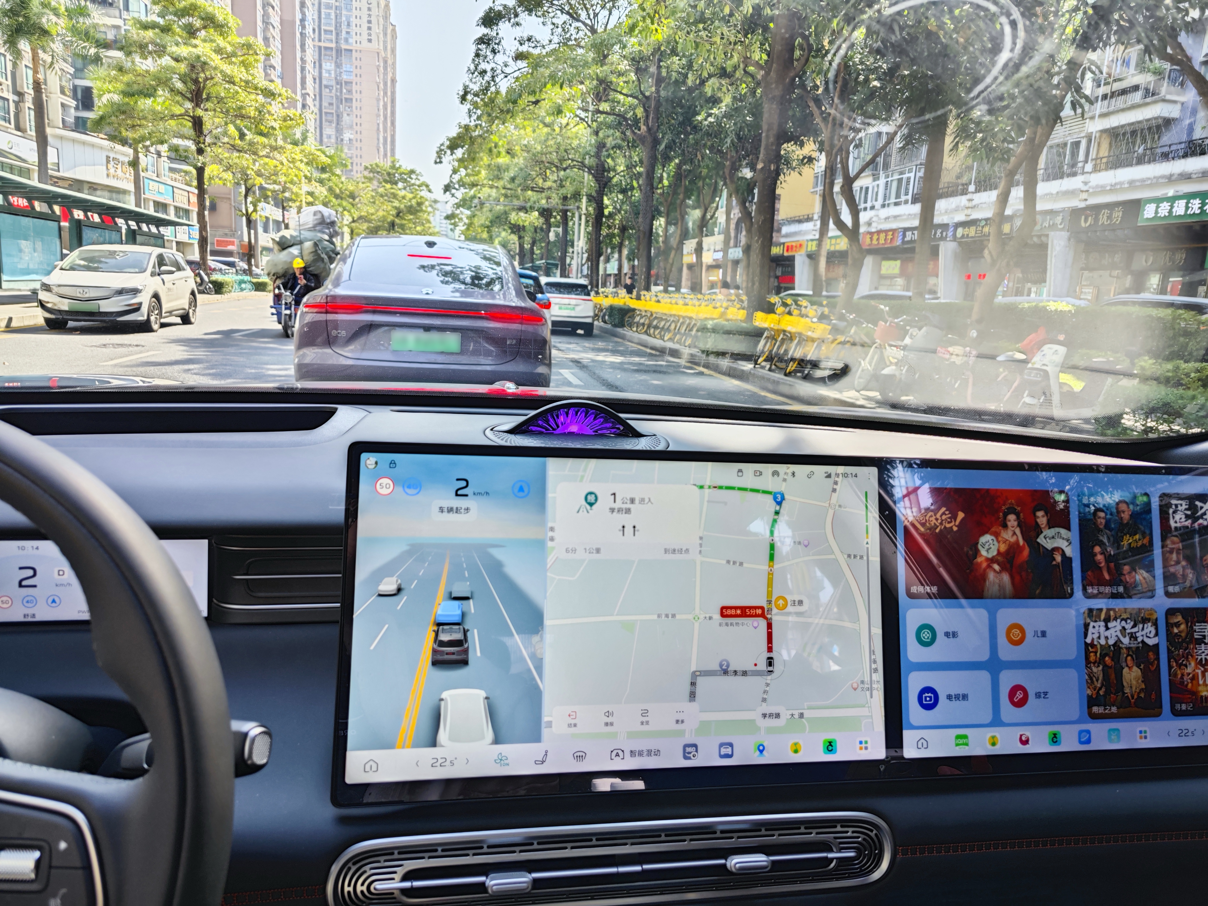 安全是辅助驾驶系统的基础。在实际体验中,面对道路右侧频繁穿行的行人与电动摩托车,系统均能稳定识别,而且系统比电车通的反应要快,对于盲区鬼探头的情况,系统就已经帮我完成了刹车减速。