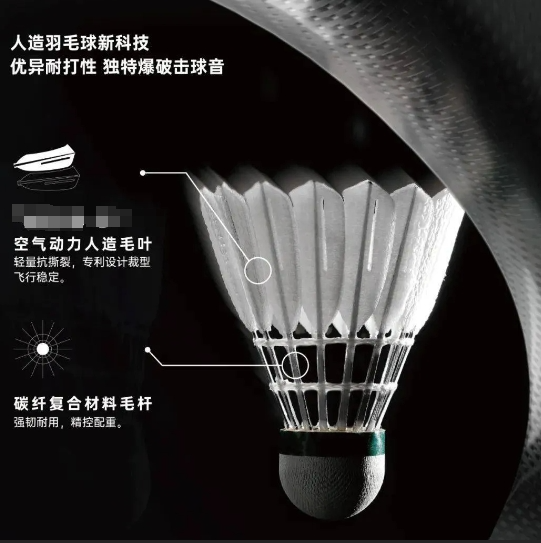 目前市场上就流行着一款毛杆和人造毛叶由碳纤维复合材料制成的人造球,得益于其全合成材料的属性,它的价格相对稳定,一颗这样的人造球价格大约在10元左右。它的耐用性相当于2到3颗鹅毛球,而且在飞行稳定性上远超普通鸭毛球。